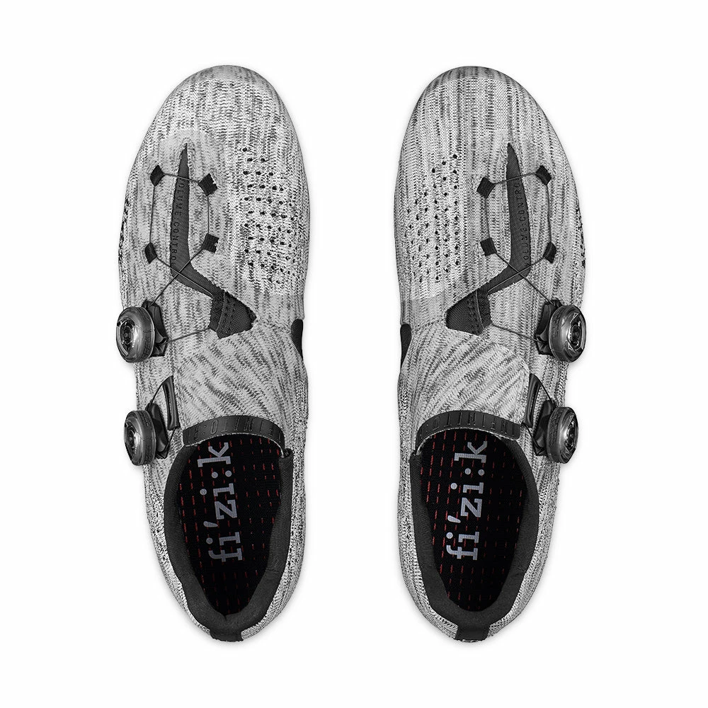 Das Obermaterial des fizik Knit ist traditionellen Obermaterialien aus Gewebe oder Mikrofaser einen Schritt voraus. Diese Oberteile werden mit elektronischen Strickmaschinen hergestellt, die Garnschlingen auf Nadeln miteinander verbinden und die Garnrichtung des Stoffes nahtlos Ă€ndern können, um unterschiedliche Maschenmuster zu erzeugen. Dadurch können ausgeprĂ€gte Funktionszonen entworfen und geschaffen werden, wobei in SchlĂŒsselbereichen wie LĂŒftungsschlitzen und Mesh-Ăffnungen eine verbesserte AtmungsaktivitĂ€t im Vordergrund steht. Die zusĂ€tzliche wasserabweisende Behandlung schĂŒtzt vor Regen und Spritzwasser. Um eine effiziente KraftĂŒbertragung auf die Pedale zu gewĂ€hrleisten, wurden gezielte Bereiche aus wĂ€rmeverschmolzenem PU integriert, um dort UnterstĂŒtzung fĂŒr den FuĂ zu bieten, wo Sportler sie am meisten benötigen. Diese Konstruktion gewĂ€hrleistet, dass der Schuh gut belĂŒftet und auĂerdem extrem leicht ist und das bei der gleichen UnterstĂŒtzung und Treteffizienz wie ein herkömmlich gefertigter Radschuh.