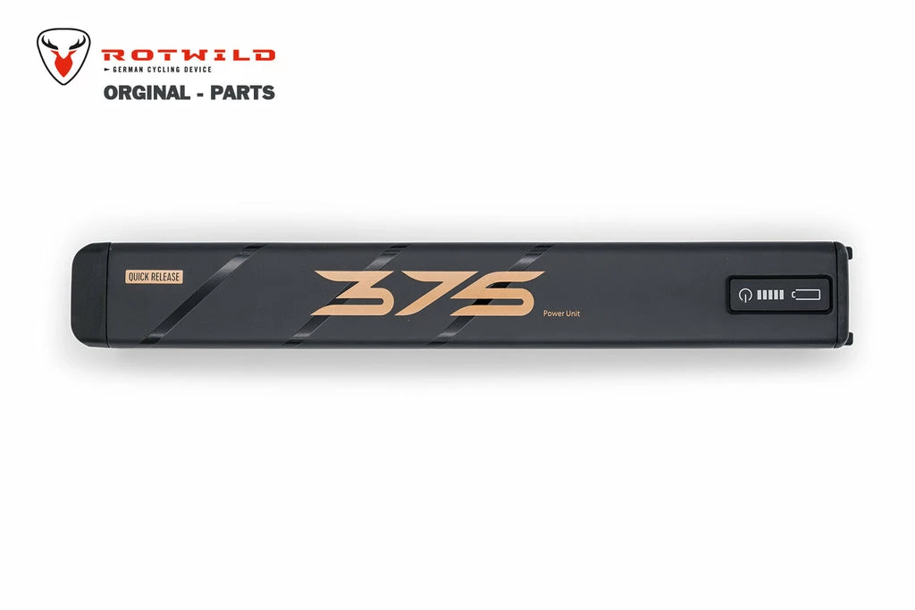 Der Rotwild Akku R.375 Carbon ist fĂŒr die Befestigung am Unterrohr konstruiert und hat eine KapazitĂ€t von 375 Wh bei einer Spannung 37 Volt.