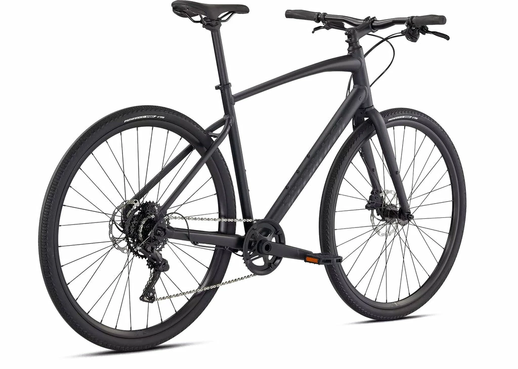 Specialized A1 Premium Aluminum, Fitness Geometry, butted tubing, internal cable routing, flat-mount disc, quick-release, Plug + Play rack/fender mounts