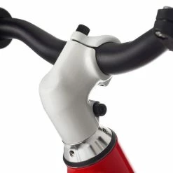 Zwischen Gabel und Rahmen spannt sich ein kleiner Gummiring, der Übersteuern verhindert und die Lenkung zusätzlich stabilisiert. Das unterstützt beim sicheren Geradeausfahren und hilft Stürze durch zu starken Lenkereinschlag zu vermeiden